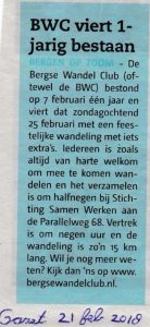 Iedere deelnemer loopt op eigen risico. De Bergse Wandel Club kan niet aansprakelijk worden gesteld worden voor ongevallen, beschadigingen of verlies van persoonlijke bezittingen.